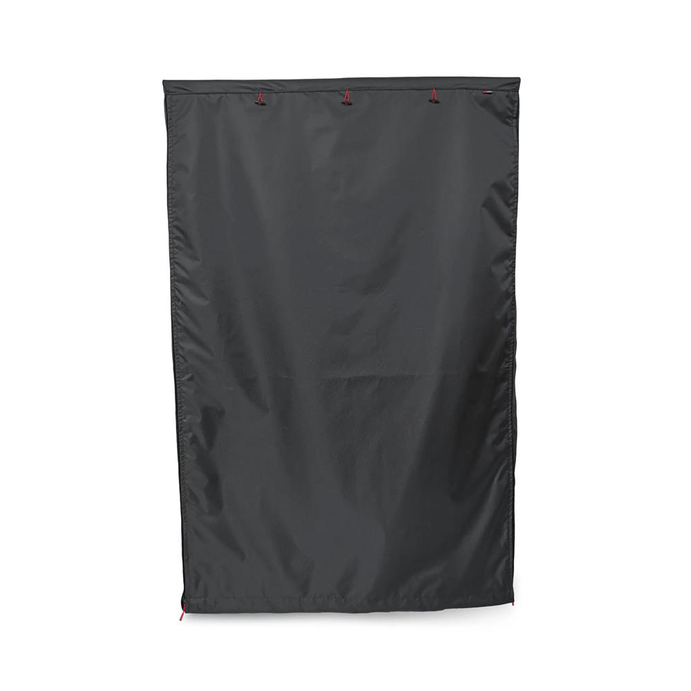 - Seitenteile lassen sich von jeder Seite per Reißverschluss öffnen, aufrollen und oben mit elastischen Schlaufen fixieren