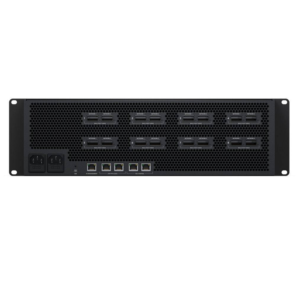 - Redundanz: SMPTE 2022-7 kompatibel (über mehrere duale 100G-Ethernet-Verbindungen)