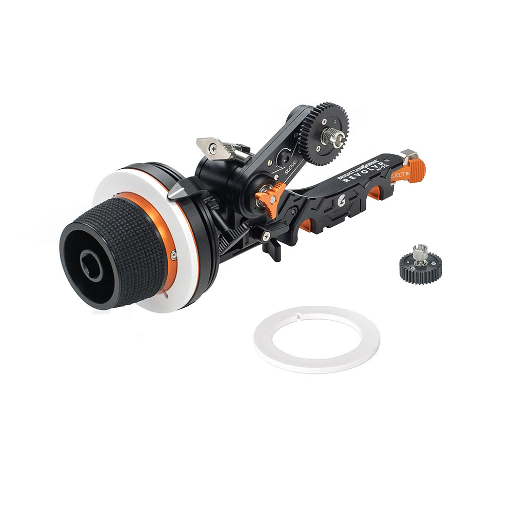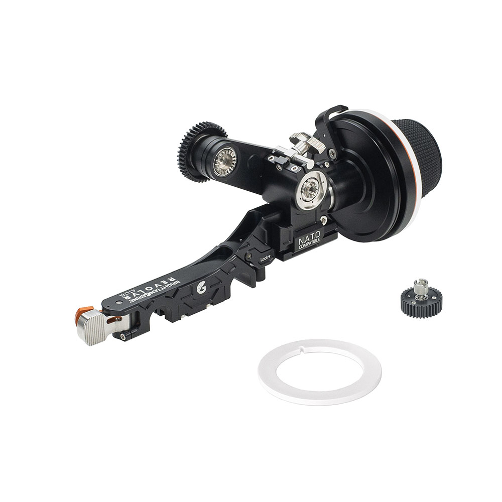 - Schwenkarm und Zahnräder zum verbinden der Kernbrücke mit dem Objektivring