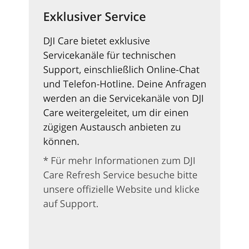 Hinweis: Der DJI Care Refresh Service ist nur in der Region zulässig in der das Produkt erworben wurde !