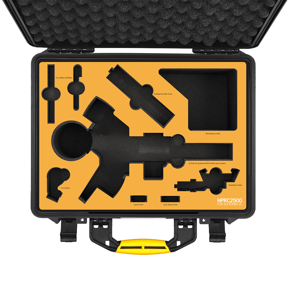 Hartschalenkoffer 2500 mit vorgeschnittenem Schaumstoff für die DJI RS 2 Pro Combo mit allem Zubehör