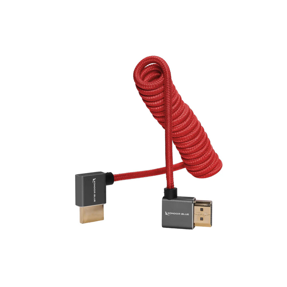 - 1x KB-FHDMI-12RA-R RIGHT ANGLE FULL HDMI CABLE FOR ON-CAMERA MONITORS 12"-24" BRAIDED COILED (Cardinal Red)