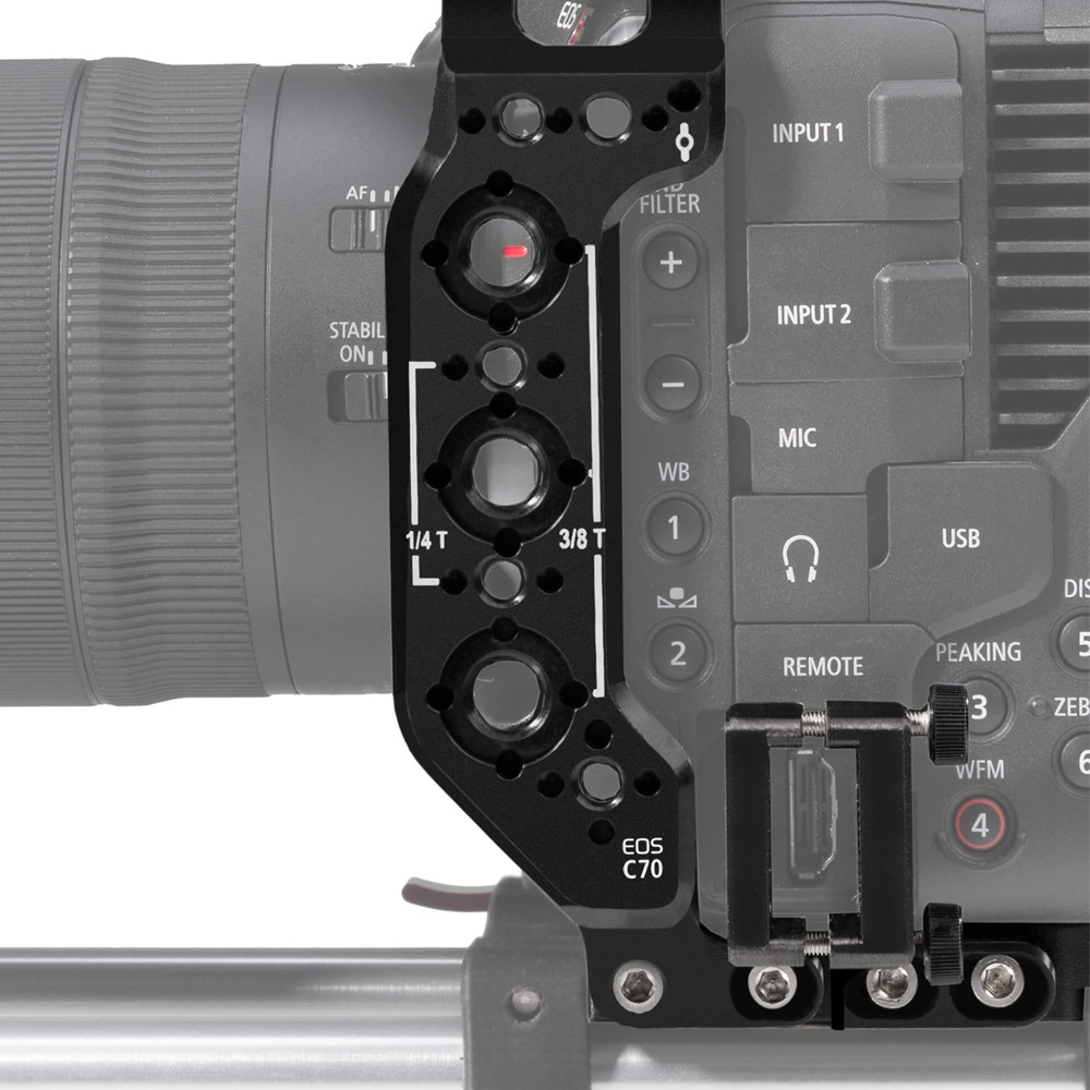 Duale 15mm Stabhalterung mit 2x 15mm Stäben, Adapterplatte und HDMI-Kabelklemme für Canon EOS C70