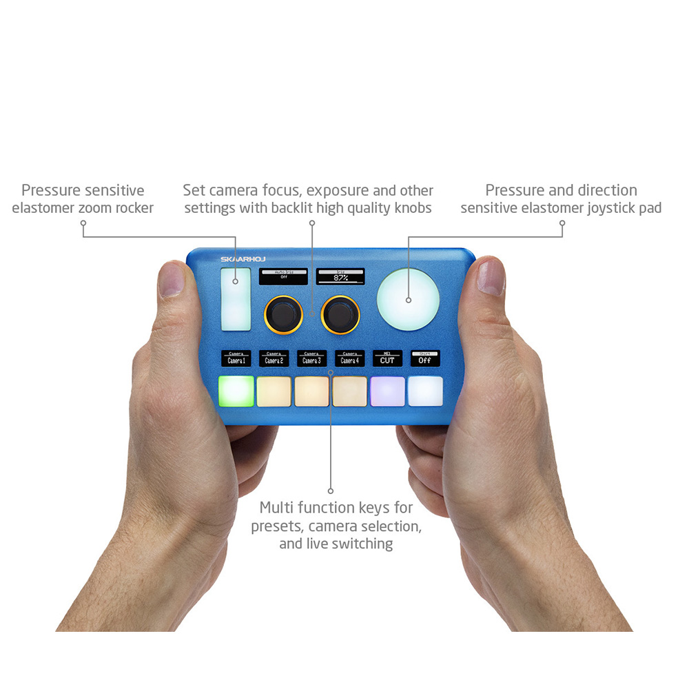 - Zur Steuerung von Videokreuzschienen wie ATEM, vMix oder anderen Skaarhoj Live-Kreuzschienensystemen