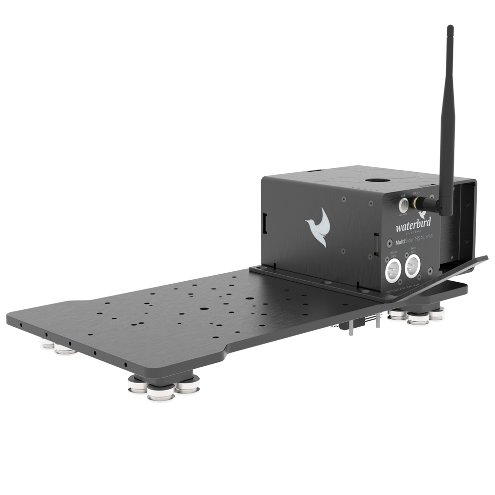 Der MS XL ist mit 14 cm Schienenabstand doppelt so breit wie der MS Pro und MS SWIFT. Er verfügt über einen geräuscharmen starken BLDC-Motor für eine hohe Belastbarkeit und sanfte Bewegung. Zusätzlich enthält er noch die XL Motion Control, um den Slider via DMX, Ethernet oder auch mit einem Panasonic PTZ Controller steuern zu können.